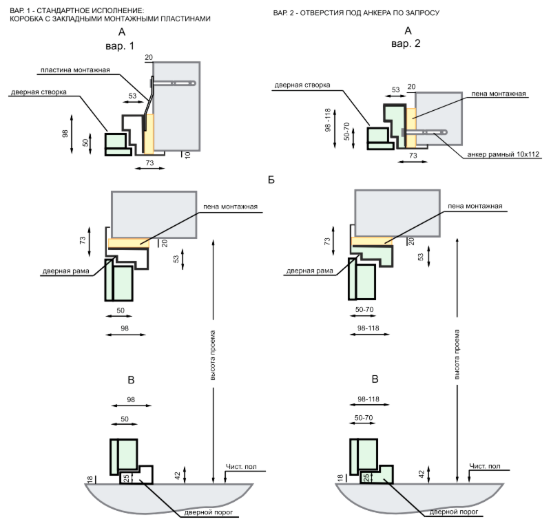 Также важно понимать, какой способ монтажа приемлем для вашего варианта. Ведь это влияет на тип конструкции каркаса будущей двери и комплект необходимого крепежа.